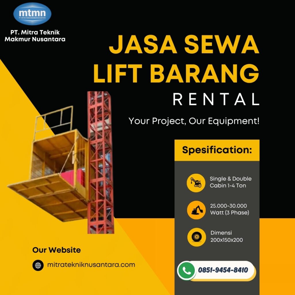 PT. Mitra Teknik Makmur Nusantara (MTMN) hadir sebagai solusi profesional untuk kebutuhan sewa lift proyek di wilayah Maluku Tengah, Maluku.