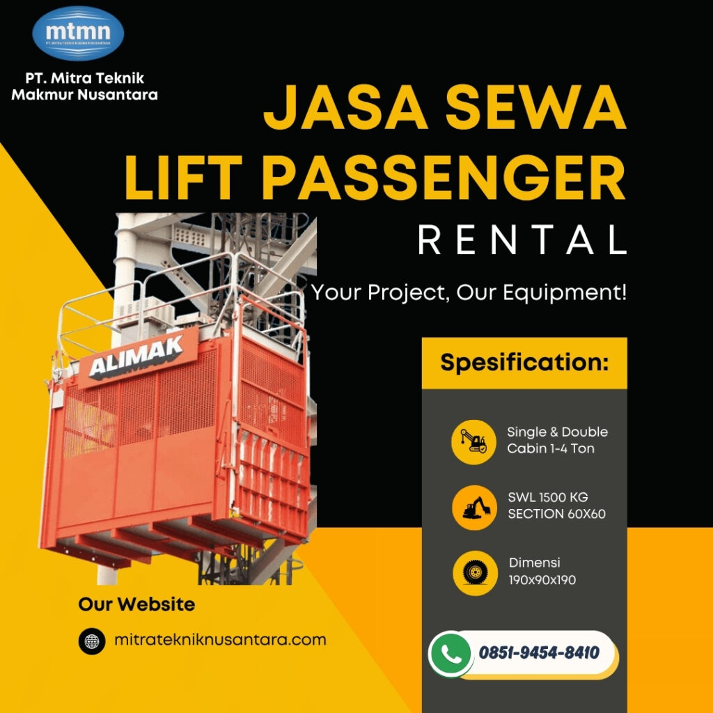 PT. Mitra Teknik Makmur Nusantara (MTMN) hadir sebagai solusi profesional untuk kebutuhan sewa lift proyek di wilayah Tegal, Jawa Tengah.