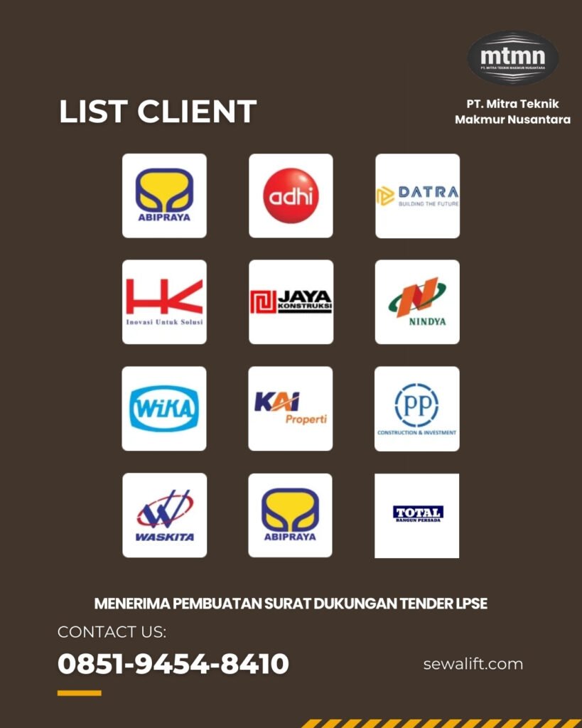 PT Mitra Teknik Makmur Nusantara (MTMN) menyediakan layanan sewa lift proyek dan lift passenger untuk mendukung kelancaran pekerjaan konstruksi di Lombok Timur, Nusa Tenggara Barat. Layanan ini mencakup lift barang (material hoist) dan lift penumpang proyek yang dirancang khusus untuk meningkatkan efisiensi angkut material serta mobilitas pekerja di gedung bertingkat.