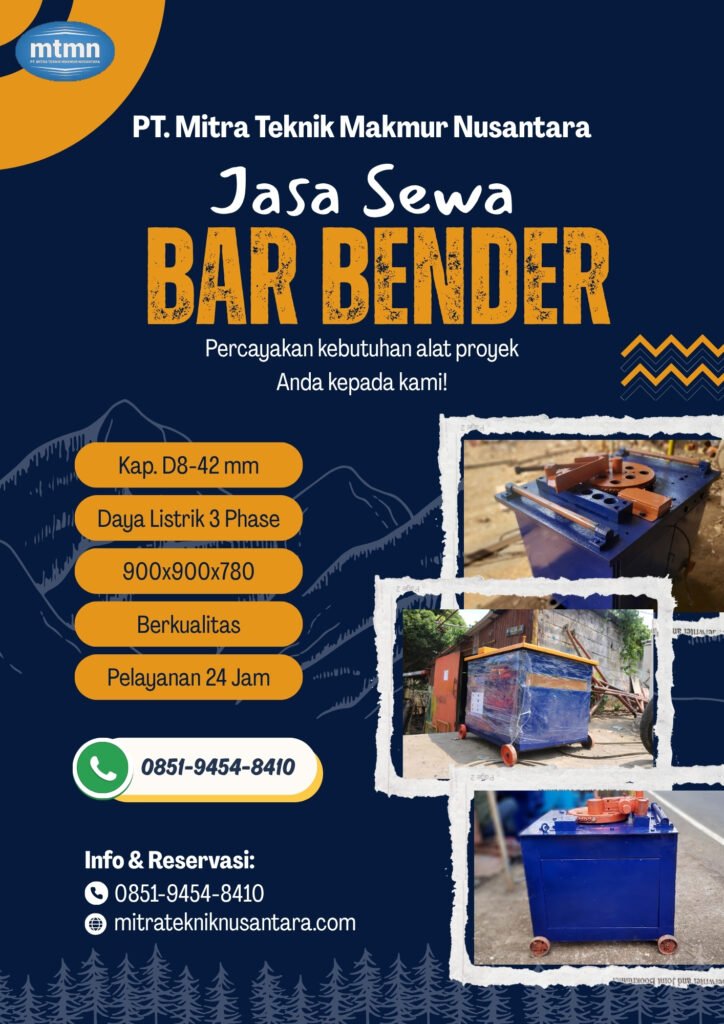 MTMN melayani penyewaan Bar Bender dan Bar Cutter untuk berbagai skala proyek, mulai dari pembangunan rumah tinggal, gedung bertingkat, apartemen, kawasan industri, hingga proyek infrastruktur berskala besar. Mesin Bar Bender digunakan untuk membentuk besi beton sesuai detail gambar kerja, sedangkan Bar Cutter berfungsi memotong tulangan dengan ukuran yang akurat.