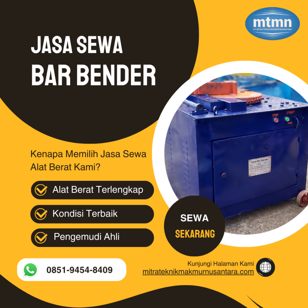 PT. Mitra Teknik Makmur Nusantara (MTMN) adalah perusahaan terpercaya yang menyediakan sewa bar bender Mojokerto dan rental bar bender Jawa Timur, untuk kebutuhan pembengkokan besi beton secara presisi dan efisien di proyek konstruksi.