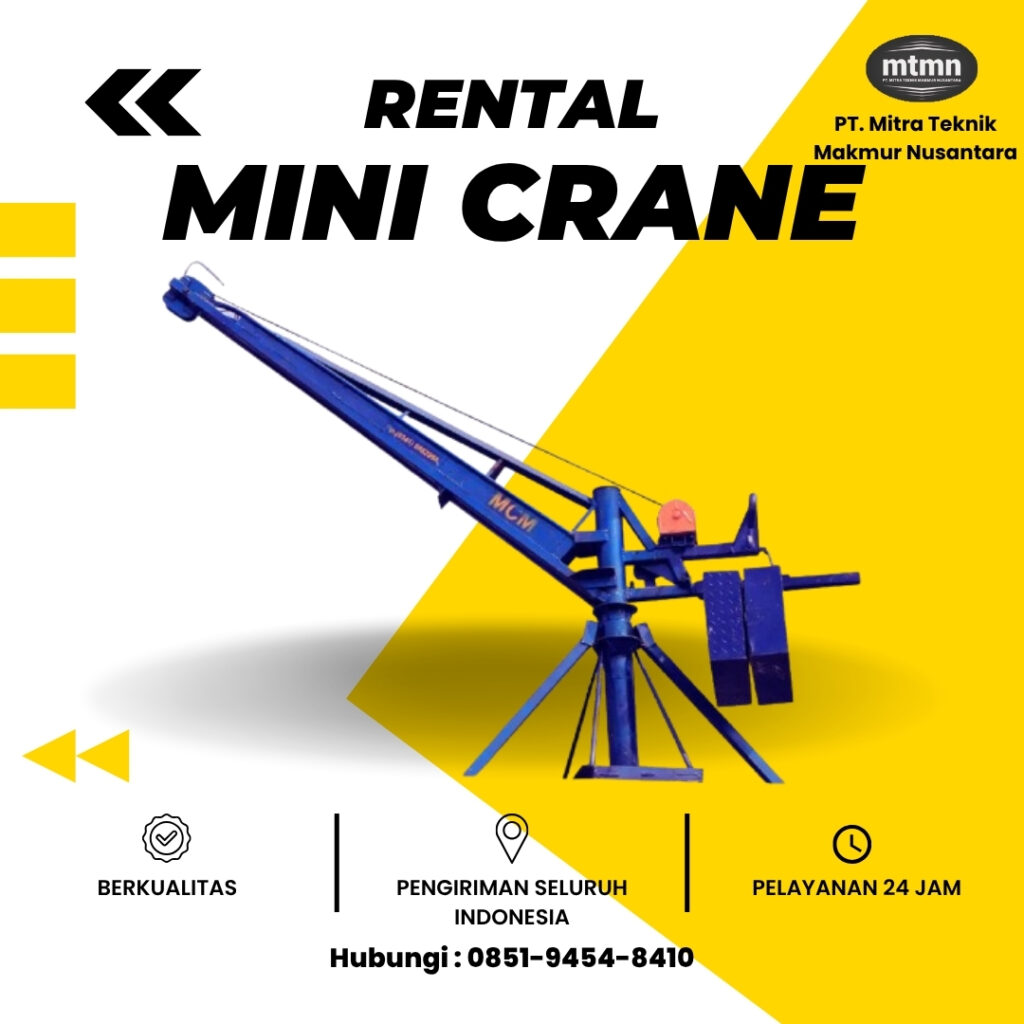 PT. Mitra Teknik Makmur Nusantara (MTMN) menyediakan layanan sewa Mini Crane untuk kebutuhan proyek konstruksi yang membutuhkan alat angkat material praktis dan efisien. Mini Crane ini dirancang untuk area proyek sempit, rooftop, atau lokasi yang membutuhkan mobilitas tinggi dengan instalasi cepat.